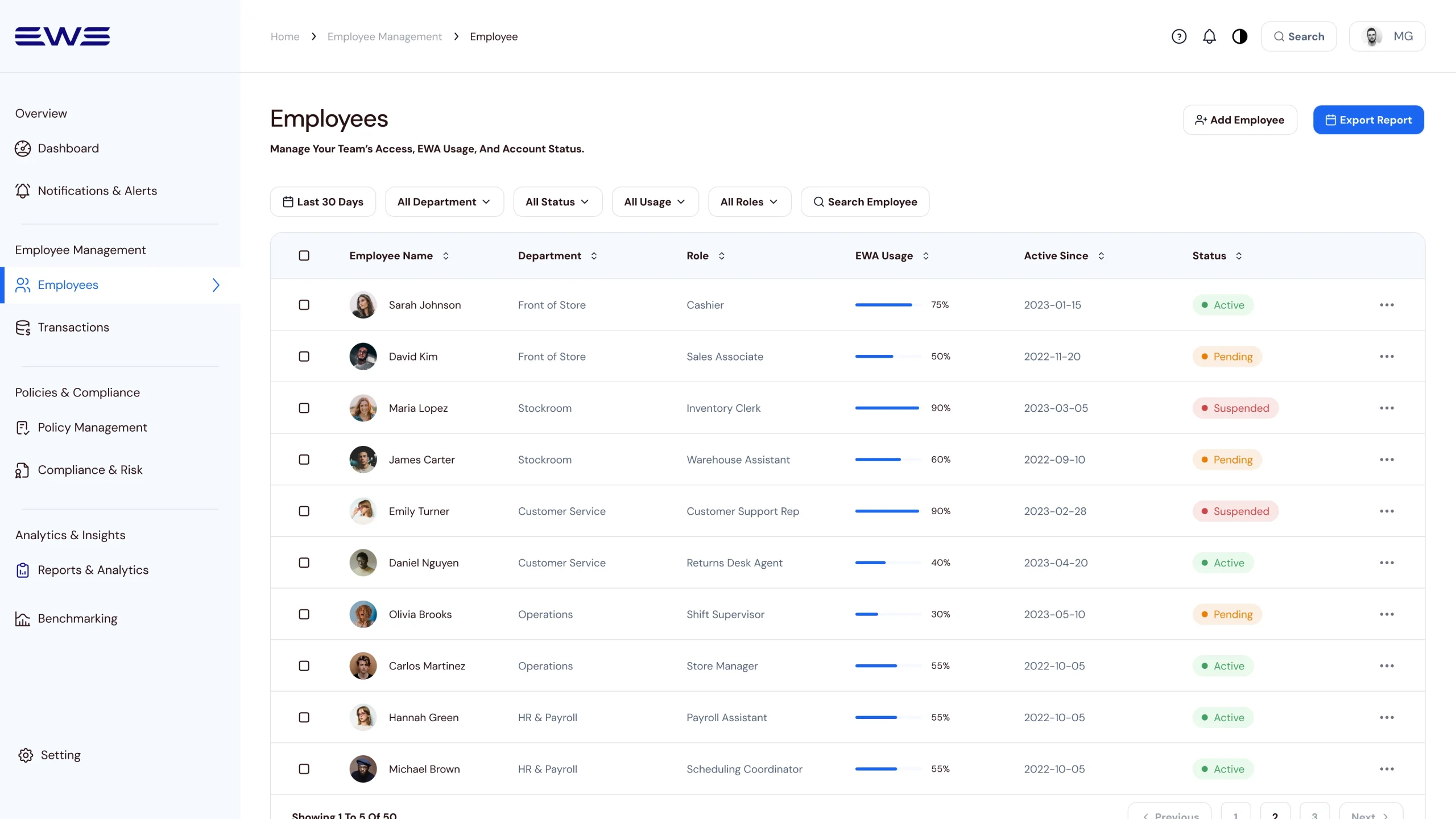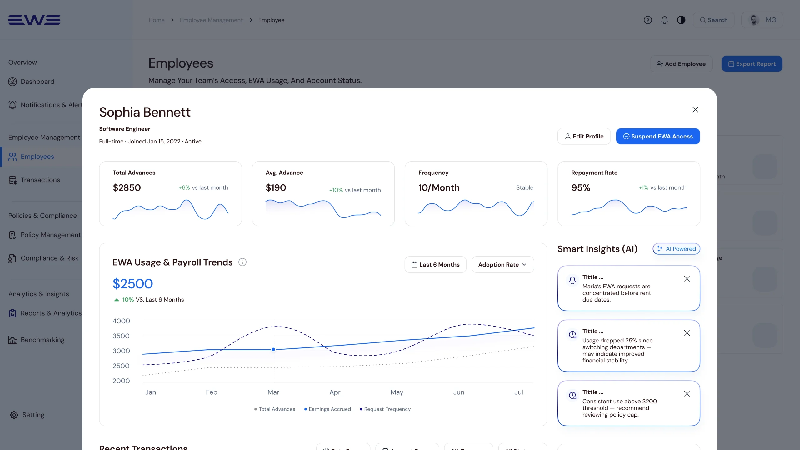 This shift from operational data to decision-ready signals helped transform EWA from a reactive payroll task into a proactive management tool for monitoring risk, usage patterns, and employee financial behavior.